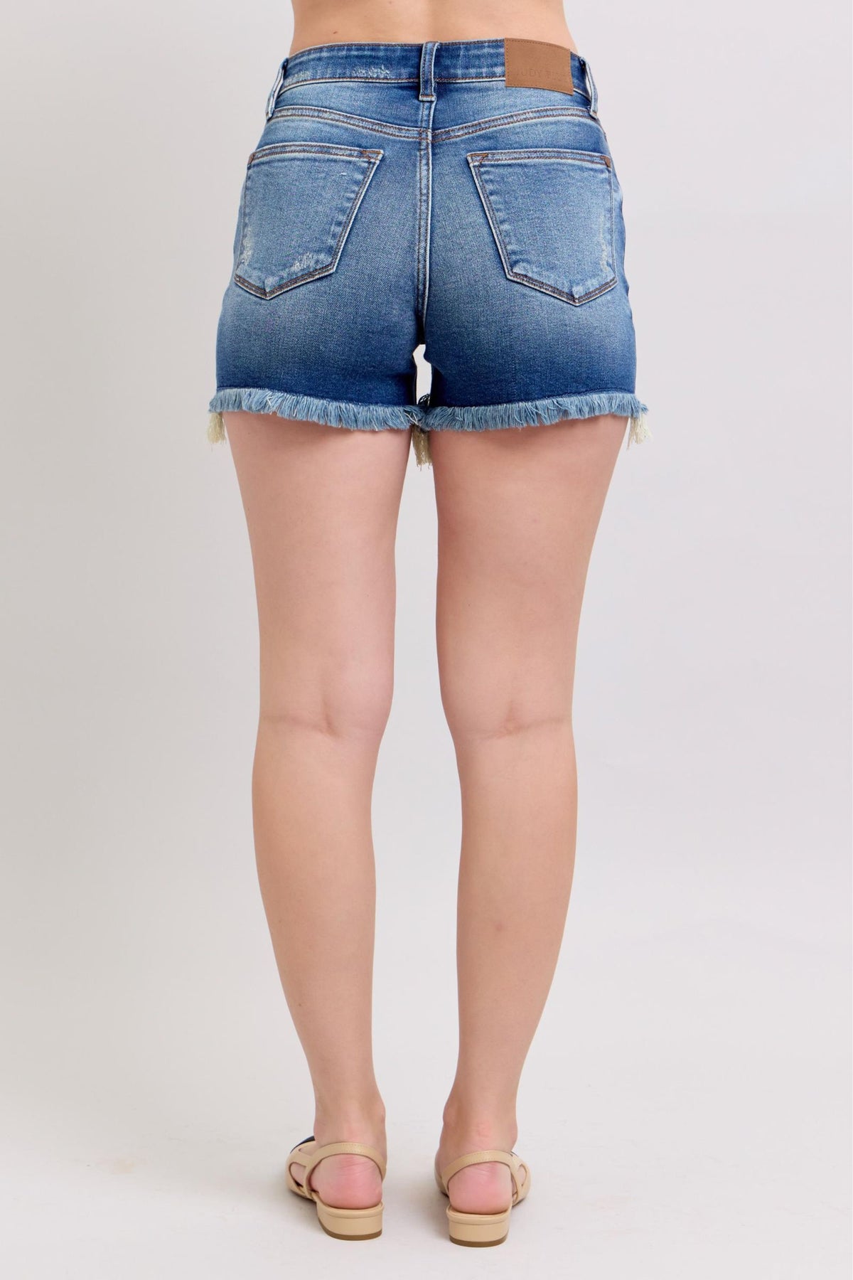 Meet your new go-to summer shorts. These Judy Blue denim shorts are next-level comfy thanks to their signature super stretchy fabric that hugs in all the right places without ever feeling tight. Designed with a flattering mid-rise fit, light distressing, and a raw frayed hem for that effortless lived-in look. The stretchy waistband gives plenty of wiggle room, making these perfect for everyday wear—from mom life to weekend plans.